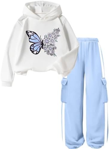 Meikulo Crop Tops for Teen Girls Hoodies Two Piece Outfits Tracksuit Activewear Kids Cute Long Sleeve Sweatshirts Sweatpants Beige, 9-10 Years: Clothing, Shoes & Jewelry
