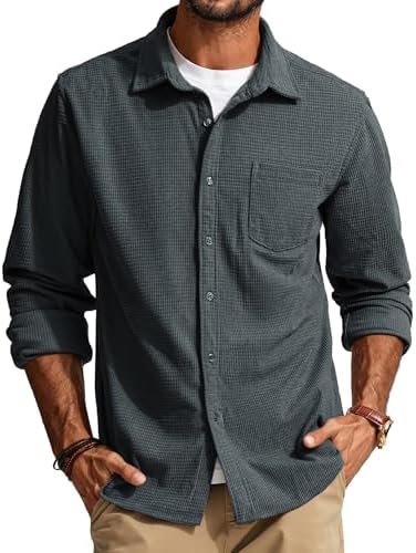 PJ PAUL JONES Men’s Casual Button up Shirt Long Sleeve Fashion Texture Button Down Shirt Dark Grey : Clothing, Shoes & Jewelry