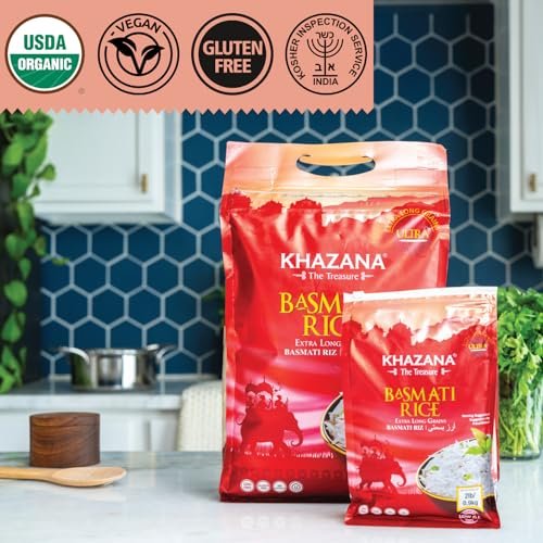 Authentic Extra Long Basmati Rice by Khazana in 10 lb Bag – Aromatic and Flavorful Indian Grain – Non-GMO, Gluten Free, Kosher, Cholesterol Free : Grocery & Gourmet Food