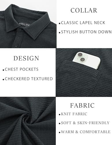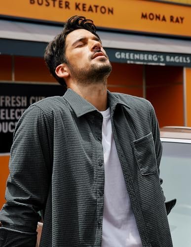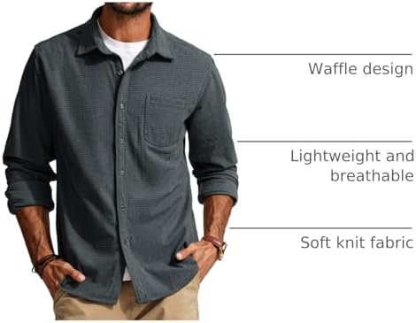 PJ PAUL JONES Men’s Casual Button up Shirt Long Sleeve Fashion Texture Button Down Shirt Dark Grey : Clothing, Shoes & Jewelry